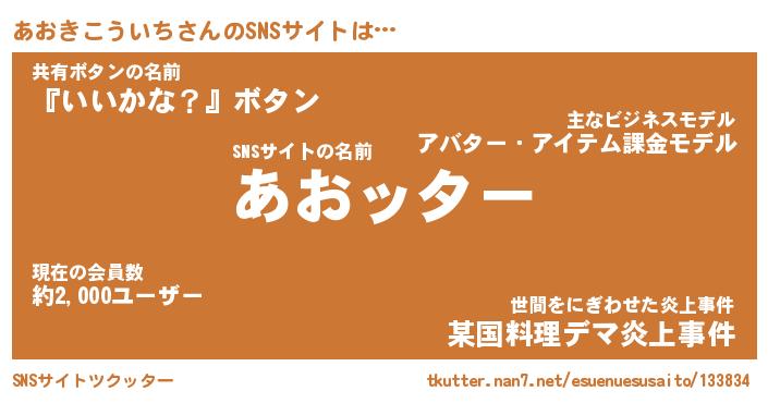 | 男性向けラノベタイトル風あだ名 | 『アオキコウイチアートオンライン』 |