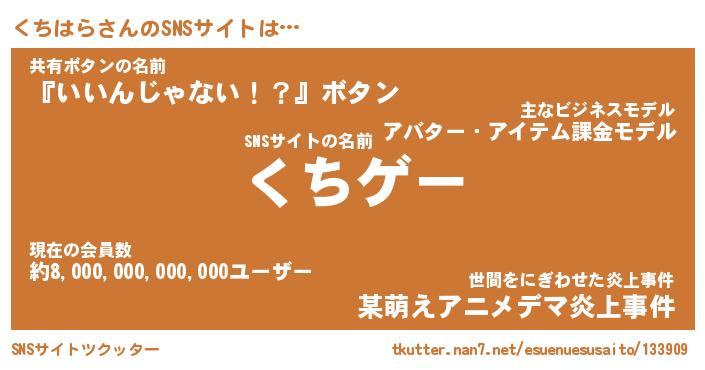 | ヘコむあだ名 | 『くちにー』『なまこ酢』『くちっ子』 |