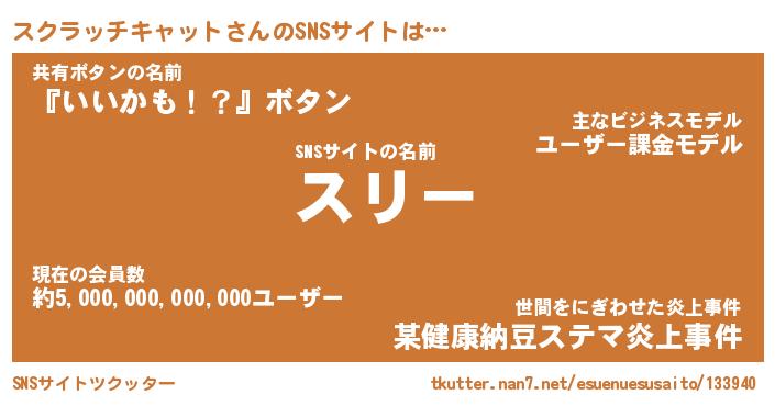 | 胡散臭い通販商品みたいなあだ名 | 『モテモテ間違いなし霊験あらたかなお札…その名も「スクラッチキャット」』 |