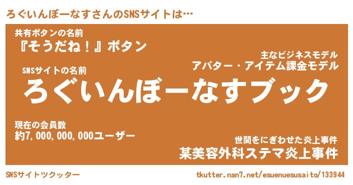 | ヘコむあだ名 | 『ろぐにゅー』『つくし』『ろぐお』 |