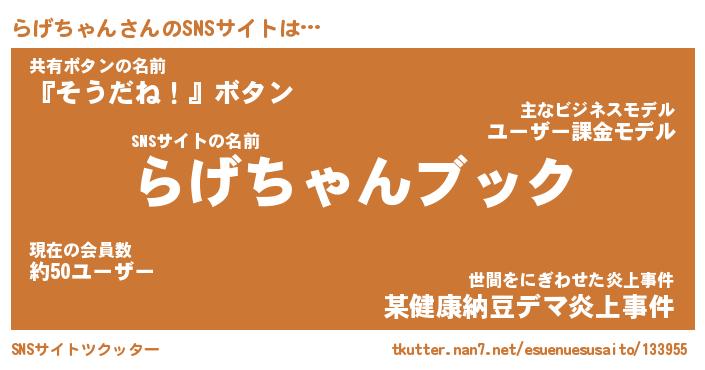 | 肩書あだ名 | 『らげちゃん社長』『らげちゃん国家主席』 |