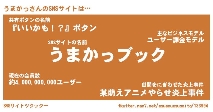| ツイッター | うまかっさんのツイッターID『namakemono_kun』 |