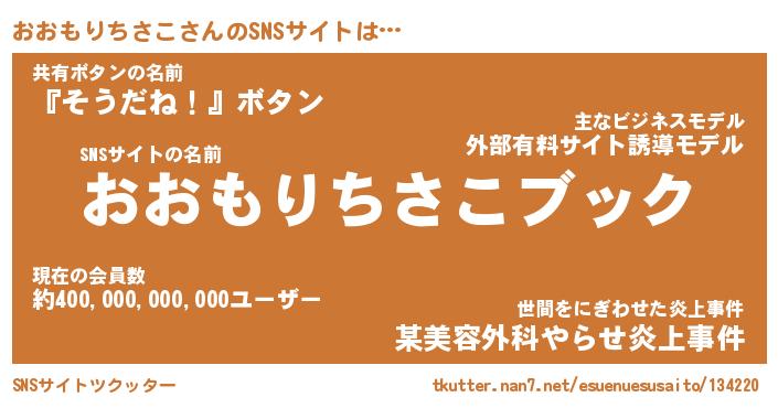 | 胡散臭い通販商品みたいなあだ名 | 『億万長者になれる水晶球…その名も「おおもりちさこ」』 |