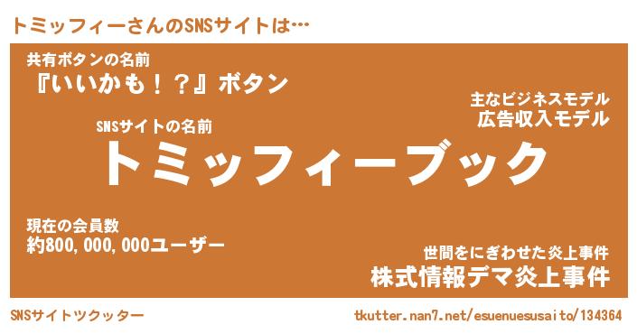 | 男性向けラノベタイトル風あだ名 | 『トミッフィーアートオンライン』 |