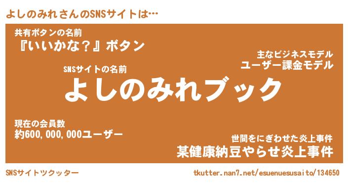 | ヒーロー風カッコイイあだ名 | 『スーパーヨシノミレ』『天弓騎士ヨシ』 |