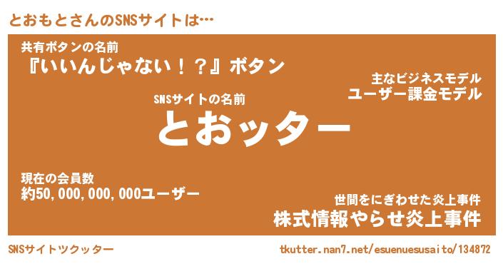 | 胡散臭い通販商品みたいなあだ名 | 『億万長者になれるブレスレット…その名も「とおもと」』 |