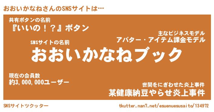 | ツイッター | おおいかなねさんのツイッターID『namakemono_man』 |
