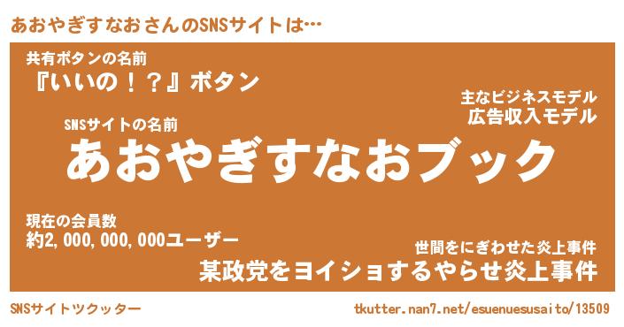 | 男性向けラノベタイトル風あだ名 | 『アオヤギスナオアートオンライン』 |