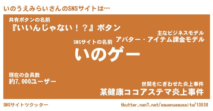 | ポケモン風あだ名 | 『イノチュウ』『イノウダネ』 |