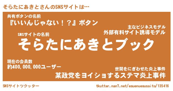 | 胡散臭い通販商品みたいなあだ名 | 『億万長者になれるブレスレット…その名も「そらたにあきと」』 |