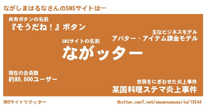| 男性向けラノベタイトル風あだ名 | 『ナガシマハルナアートオンライン』 |