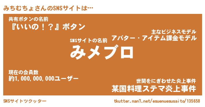 | 欧米人風あだ名 | 『マイケルみちむちょ』 |