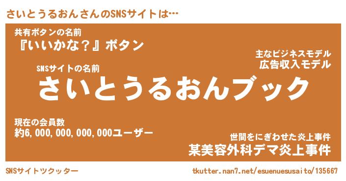 | 胡散臭い通販商品みたいなあだ名 | 『億万長者になれる霊験あらたかなお札…その名も「さいとうるおん」』 |
