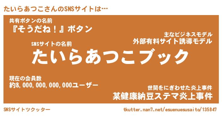 | 肩書あだ名 | 『たいらあつこ店長』『たいらあつこ団長』 |