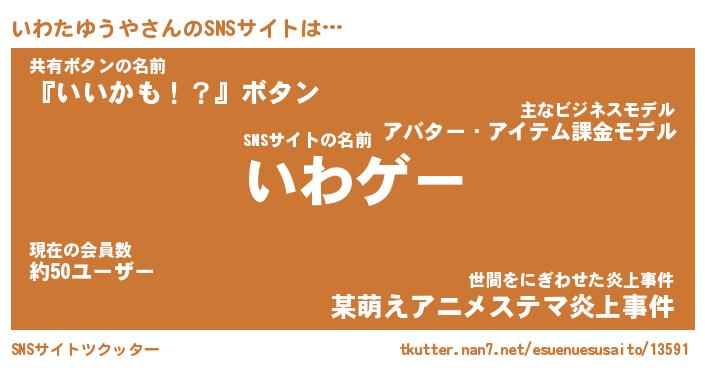 | 肩書あだ名 | 『いわたゆうや店長』『いわたゆうや班長』 |