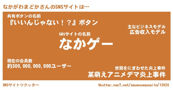 | ポケモン風あだ名 | 『ナカチュウ』『ナカガダネ』 |