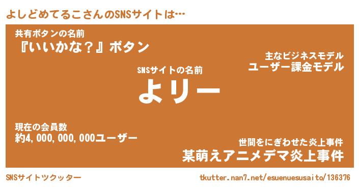 | 胡散臭い通販商品みたいなあだ名 | 『モテモテ間違いなし水晶球…その名も「よしどめてるこ」』 |