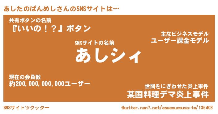 | 胡散臭い通販商品みたいなあだ名 | 『必ず成功するブレスレット…その名も「あしたのばんめし」』 |
