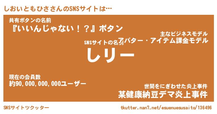 | 肩書あだ名 | 『しおいともひさ社長』 |