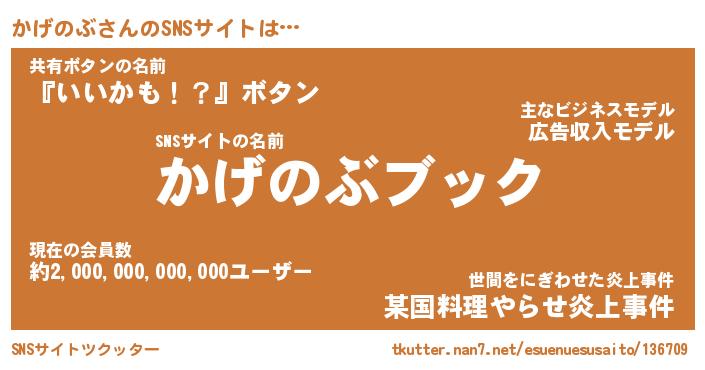 | ファンタジー風あだ名 | 『カゲフェル』『エターナルカゲノブー』 |