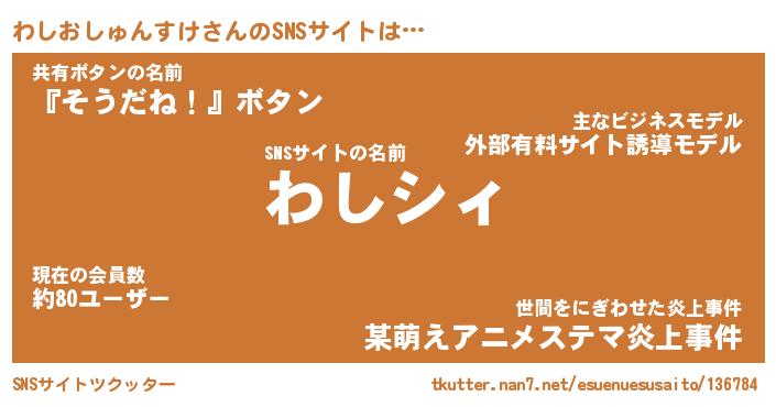 | 男性向けラノベタイトル風あだ名 | 『わしおしゅんすけの憂鬱』 |