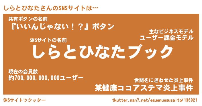 | 胡散臭い通販商品みたいなあだ名 | 『億万長者になれるブレスレット…その名も「しらとひなた」』 |