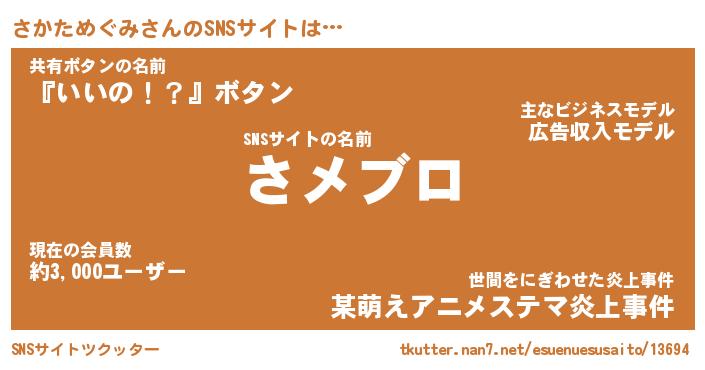 | 肩書あだ名 | 『さかためぐみ社長』『さかためぐみ塾長』 |