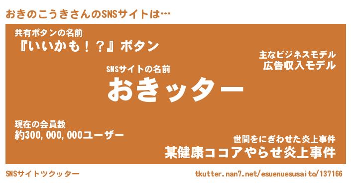 | 胡散臭い通販商品みたいなあだ名 | 『億万長者になれる霊験あらたかなお札…その名も「おきのこうき」』 |