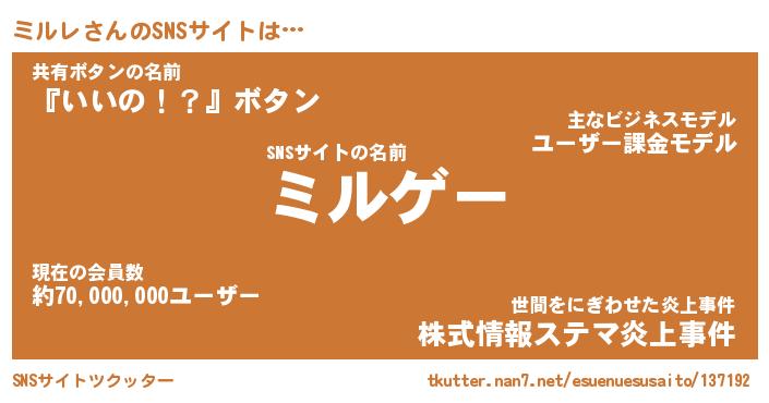 | ヘコむあだ名 | 『ミルもー』『レバニラ』『ミルお』 |
