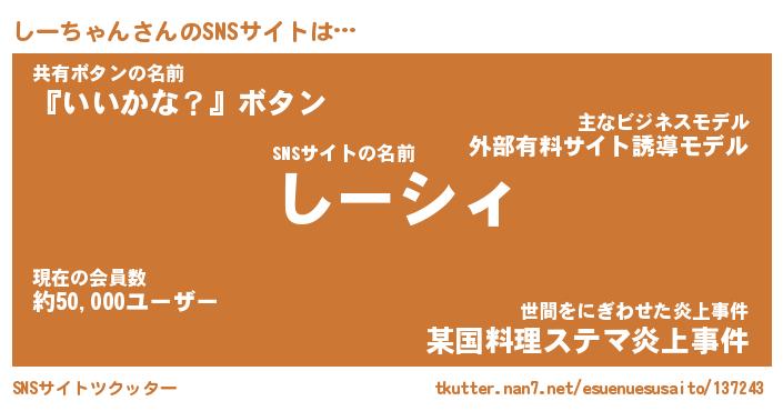 | 胡散臭い通販商品みたいなあだ名 | 『必ず成功するブレスレット…その名も「しーちゃん」』 |