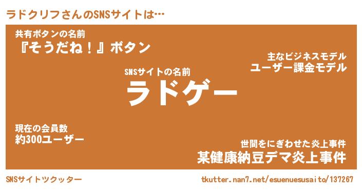 | ファンタジー風あだ名 | 『ラドフェル』『エターナルラドクリフー』 |