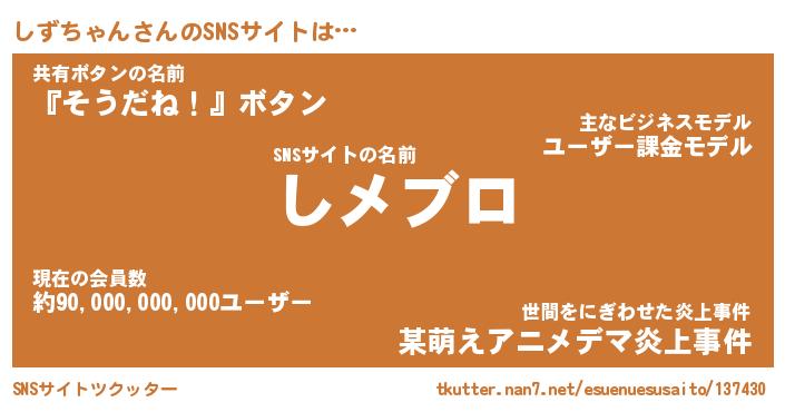 | ファンタジー風あだ名 | 『シズフェル』『エターナルシズチャンー』 |