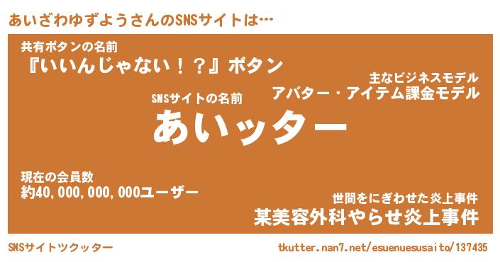| 胡散臭い通販商品みたいなあだ名 | 『億万長者になれるブレスレット…その名も「あいざわゆずよう」』 |