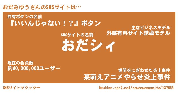 | 肩書あだ名 | 『おだみゆう社長』『おだみゆう大統領』 |