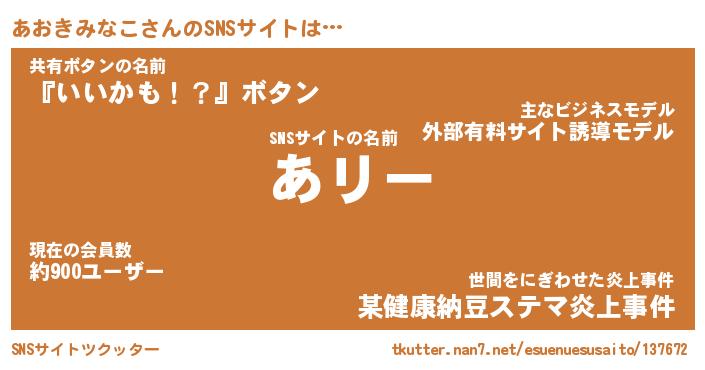 | 欧米人風あだ名 | 『マイケルあおきみなこ』 |