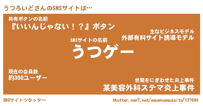| ポケモン風あだ名 | 『ウツチュウ』『ウツロダネ』 |