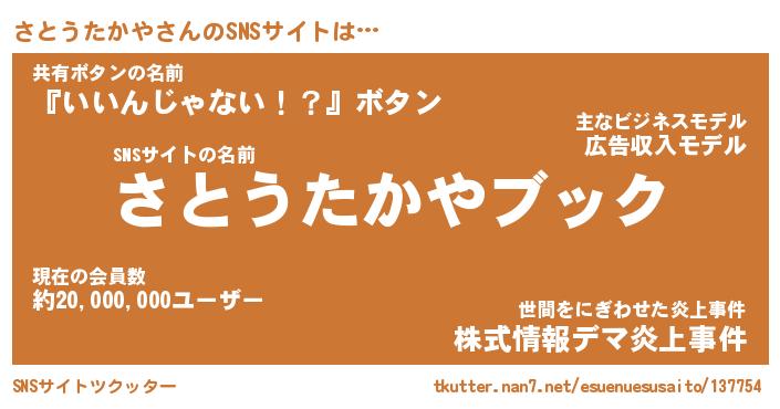 | ツイッター | さとうたかやさんのツイッターID『namakemono_nyan』 |