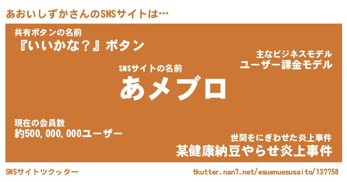 | 男性向けラノベタイトル風あだ名 | 『アオイシズカアートオンライン』 |