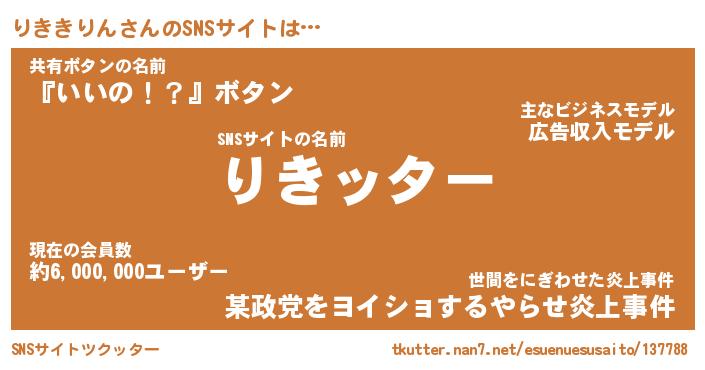 | 男性向けラノベタイトル風あだ名 | 『リキキリンアートオンライン』 |