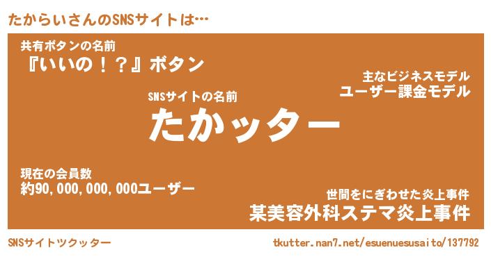 | 胡散臭い通販商品みたいなあだ名 | 『億万長者になれるブレスレット…その名も「たからい」』 |