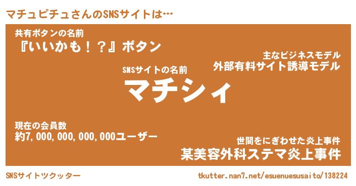 | 男性向けラノベタイトル風あだ名 | 『マチュピチュの憂鬱』 |
