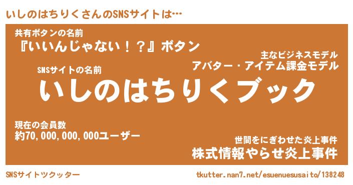 | 肩書あだ名 | 『いしのはちりくCEO』 |