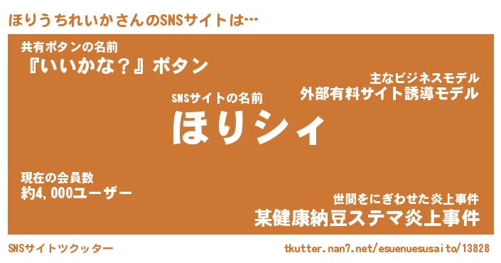 | ヘコむあだ名 | 『ほりっふぃ~』『なまこ酢』 |