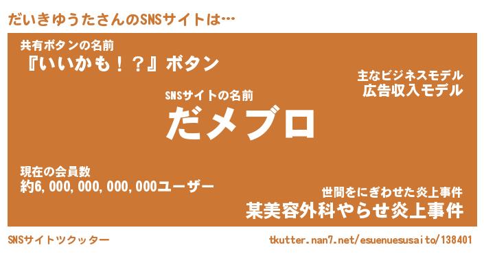 | 男性向けラノベタイトル風あだ名 | 『ダイキユウタアートオンライン』 |