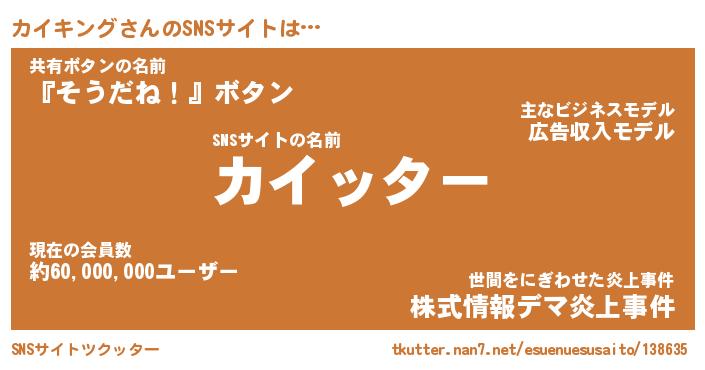 | ツイッター | カイキングさんのツイッターID『fukuyoka_kun』 |