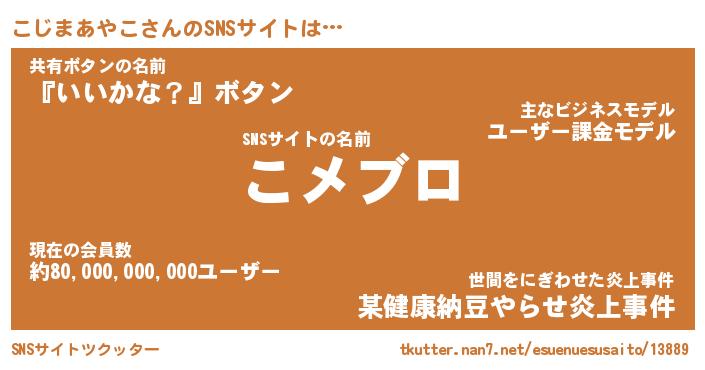 | 男性向けラノベタイトル風あだ名 | 『コジマアヤコアートオンライン』 |