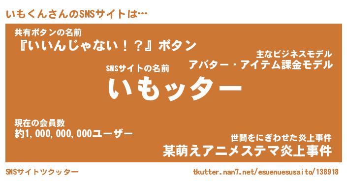 | 胡散臭い通販商品みたいなあだ名 | 『億万長者になれるブレスレット…その名も「いもくん」』 |