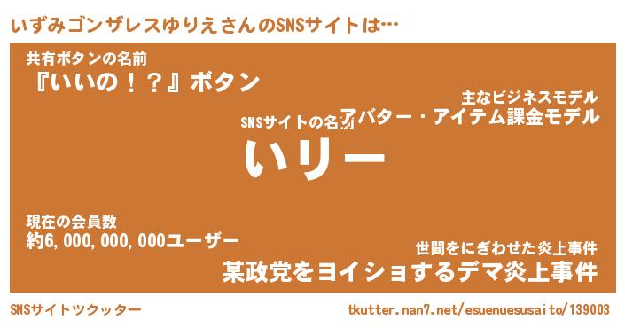| 男性向けラノベタイトル風あだ名 | 『いずみゴンザレスゆりえの憂鬱』 |