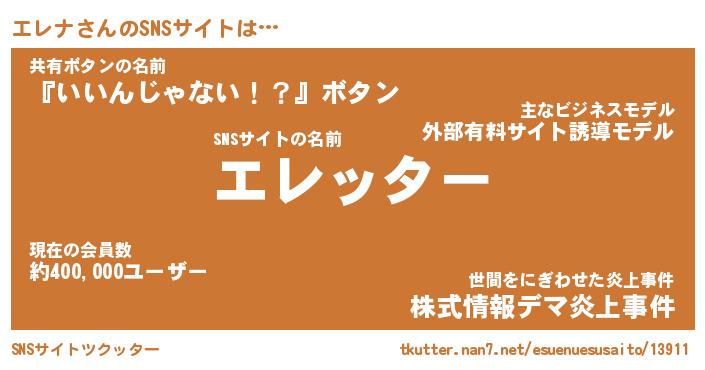 | 肩書あだ名 | 『エレナCEO』『エレナ総理大臣』 |