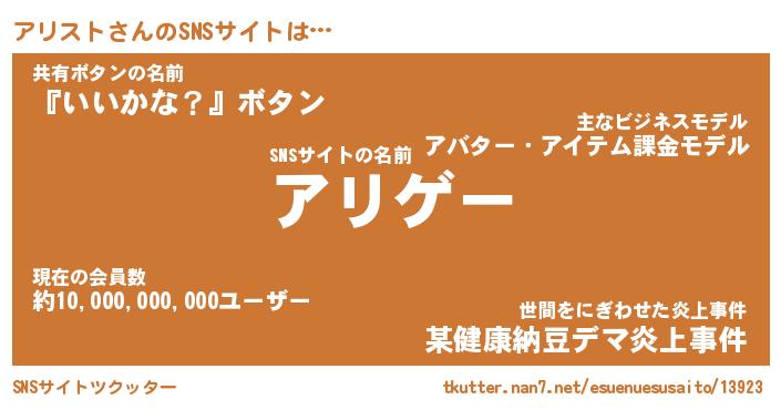 | 意味不明あだ名 | 『ペロリンアリスト』『永久保存アリスト』 |